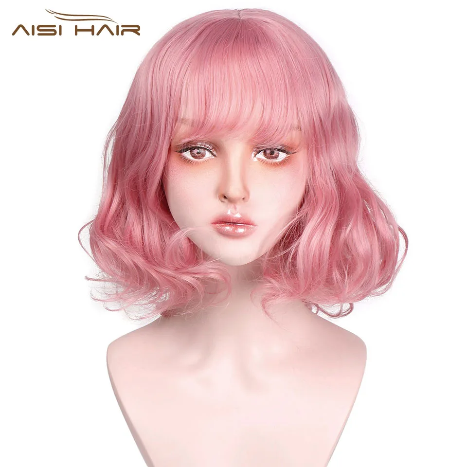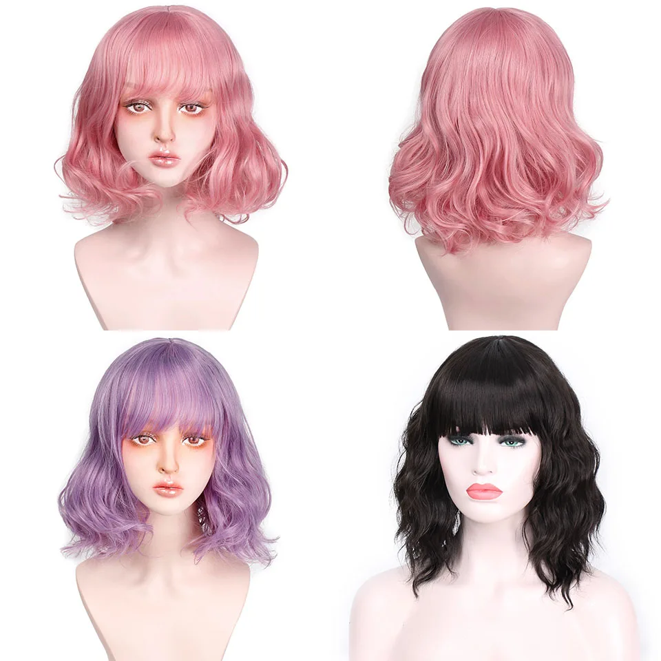 Special Offer I s a парик розовый фиолетовый короткие волосы синтетические парики с челкой для женщин волна воды накладные волосы можно Косплей Discount 40% Today!