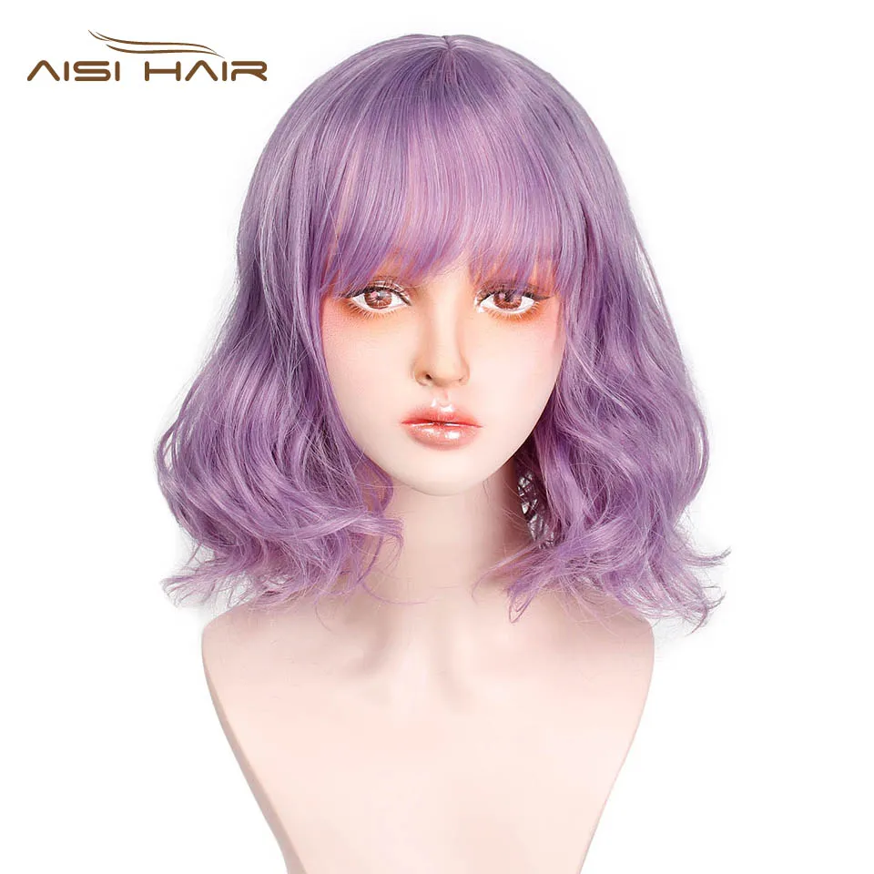 . [Скидка 40%] Купить I s a парик розовый фиолетовый короткие волосы синтетические парики с челкой для женщин волна воды накладные волосы можно Косплей Цена Дешево.